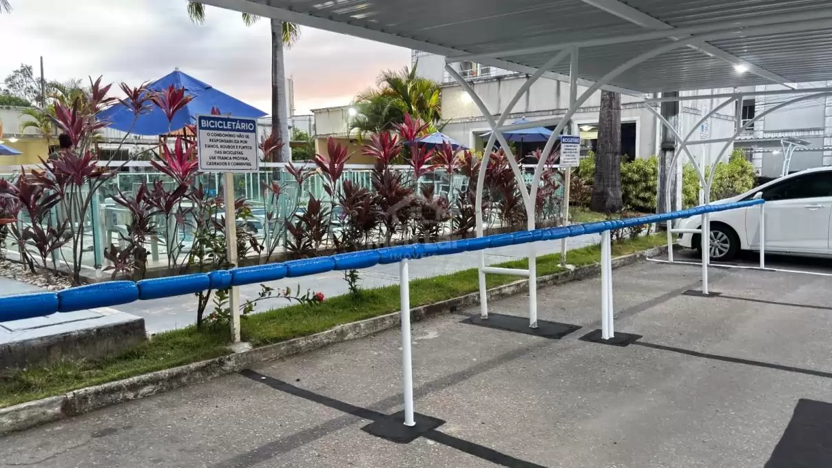 No condomínio tem calibrador de pneus, garagem coberta, minimercado